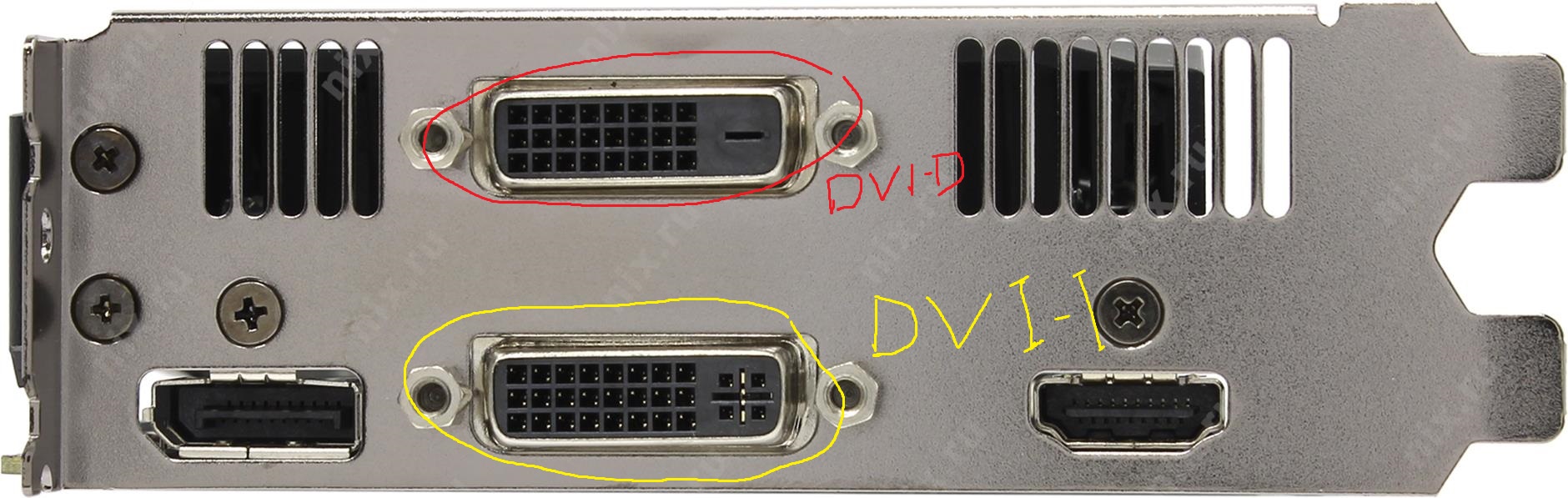 KakTyCeHok, теперь понятно, этот переходник DVI-D поддерживает только цифровую передачу, видимо на новой видеокарте вы вставили его в верхний DVI-D, а нужно в нижний DVI-I он поддерживает как аналоговый сигнал ,так и цифровой.