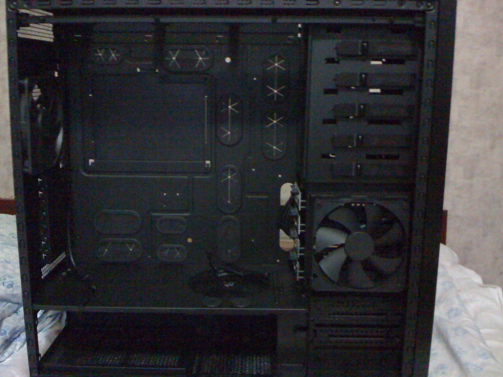 Правда бардак в корпусе, но лучше никак не сделать, слишком тесный. Всего один кулер(очень шумный! В 2 д только его и слышно), справляется с охладой 470, в простое всё таки 40 даже, а не 50 градусов. В фурмарке макс 92, а в метро 2033 макс 85 градусов. Доволен как слон .