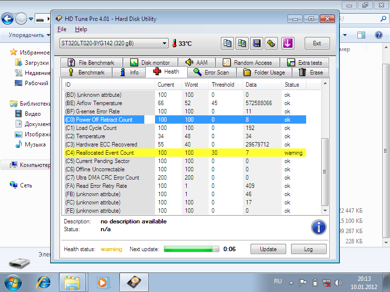 На следующий день я пошел в сервис. Показав смарт местному гарантийщику, рассказав, что какой аттрибут значит (разве я это должен знать, а не он